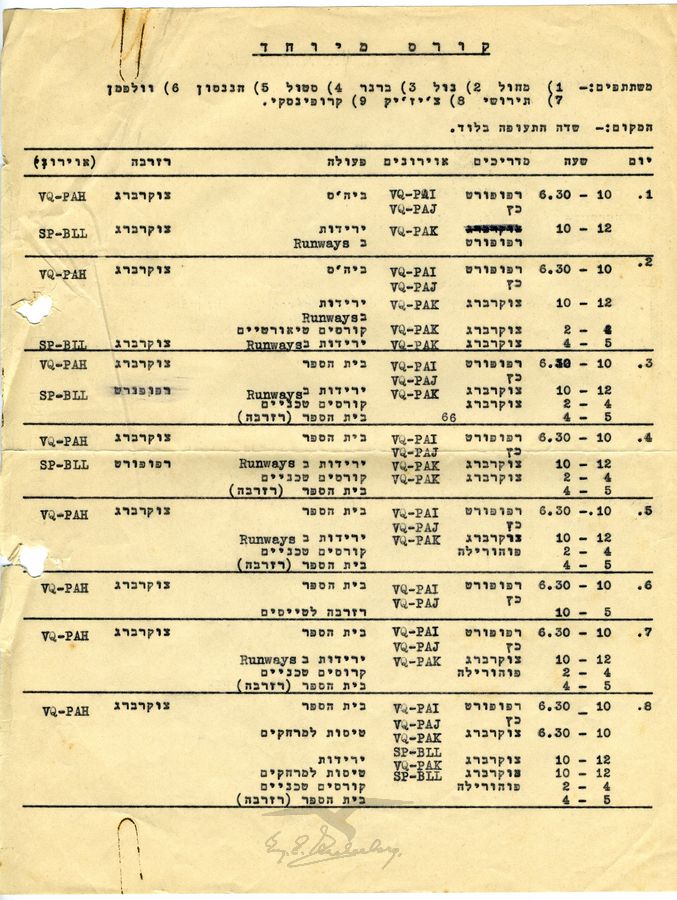 תוכנית מלאה של קורס טיס מיוחד של חברת 'אוירון' עבור תשעה תלמידים
