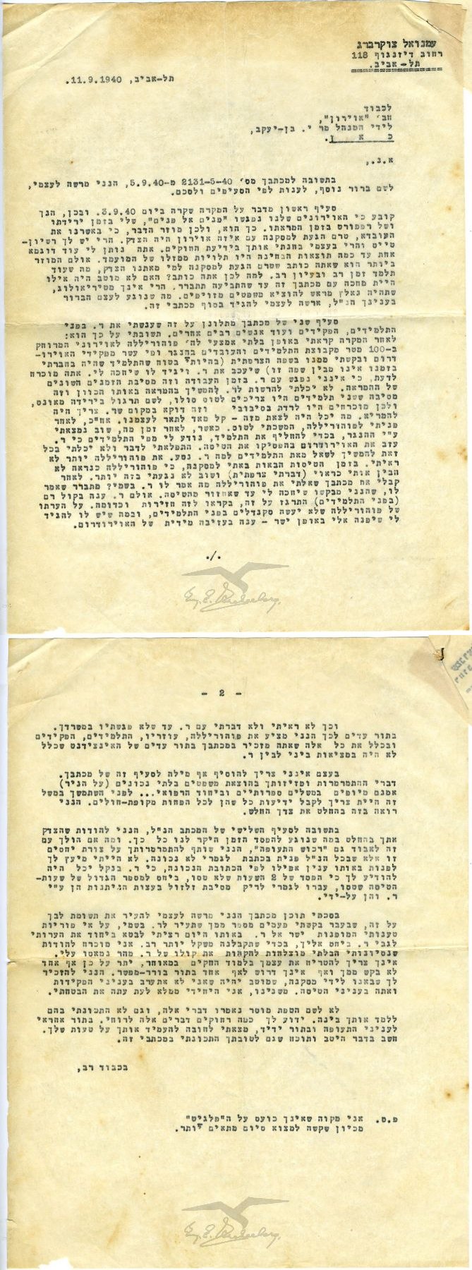 מכתב מעמנואל צוקרברג, תל אביב, ליצחק בן-יעקב, מנהל חברת 'אוירון' - אשמה ב'כמעט תאונה אווירית'